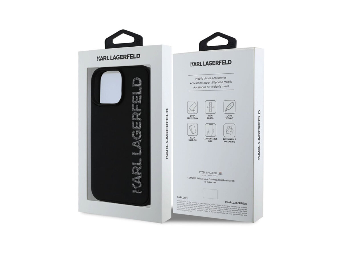 Karl Lagerfeld 3D Rubber Glitter Logo Zadní Kryt pro iPhone 16 Pro Černá