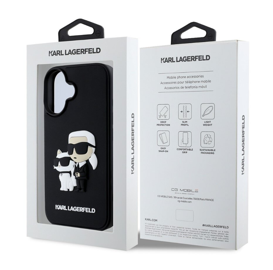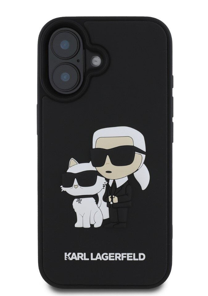 Karl Lagerfeld 3D Rubber Karl and Choupette Zadní Kryt pro iPhone 16 Black