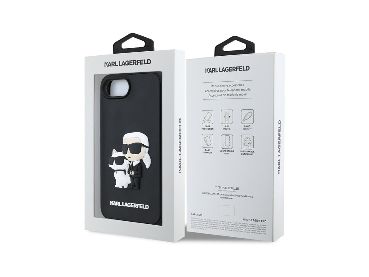 Karl Lagerfeld 3D Rubber Karl and Choupette Zadní Kryt pro iPhone 16e Černá