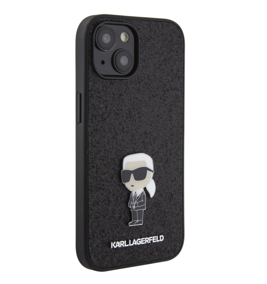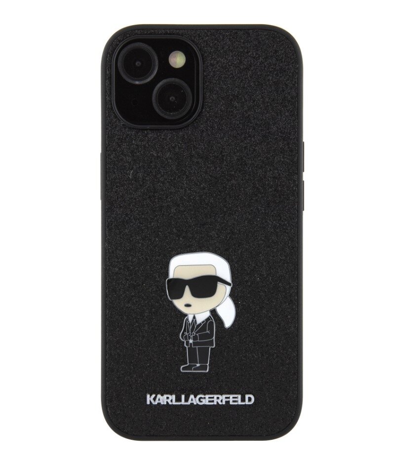Karl Lagerfeld Fixed Glitter Metal Ikonik Zadní Kryt pro iPhone 15 Černý