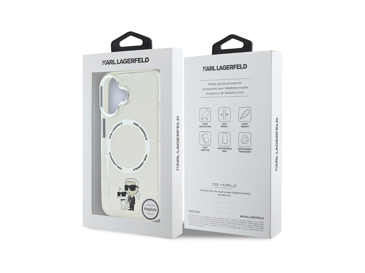 Karl Lagerfeld IML Karl and Choupette MagSafe Zadní Kryt pro iPhone 16 Průhledná