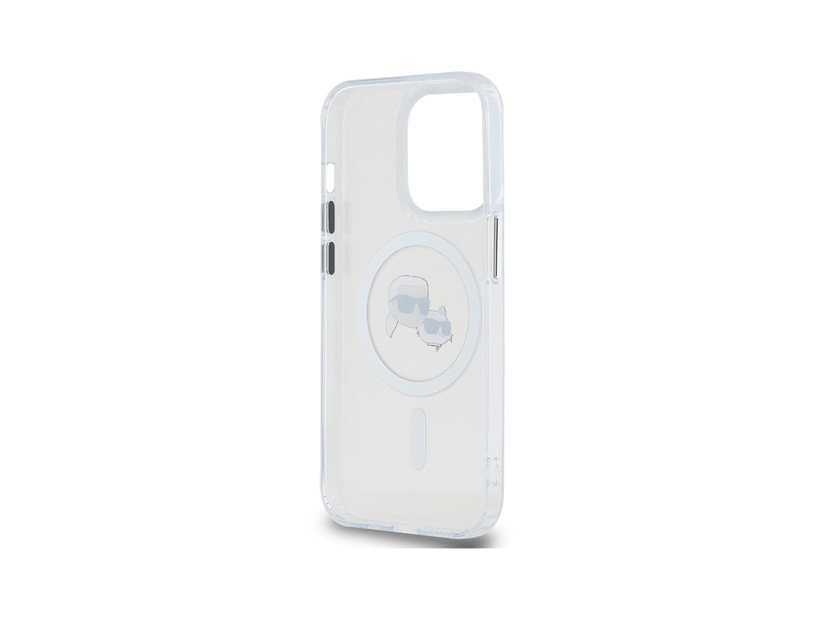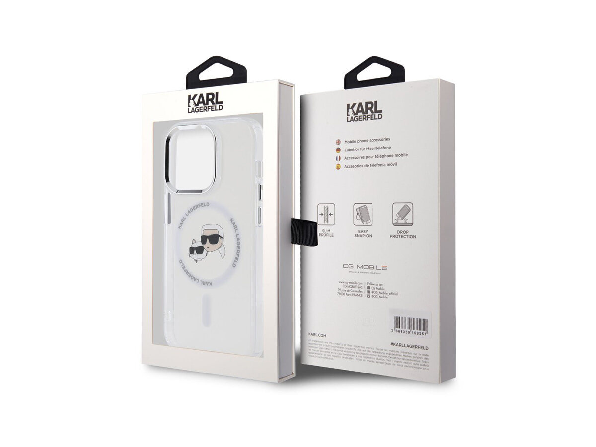 Karl Lagerfeld IML K&CH Heads Metal Frame MagSafe Zadní Kryt pro iPhone 15 Pro Průhledná