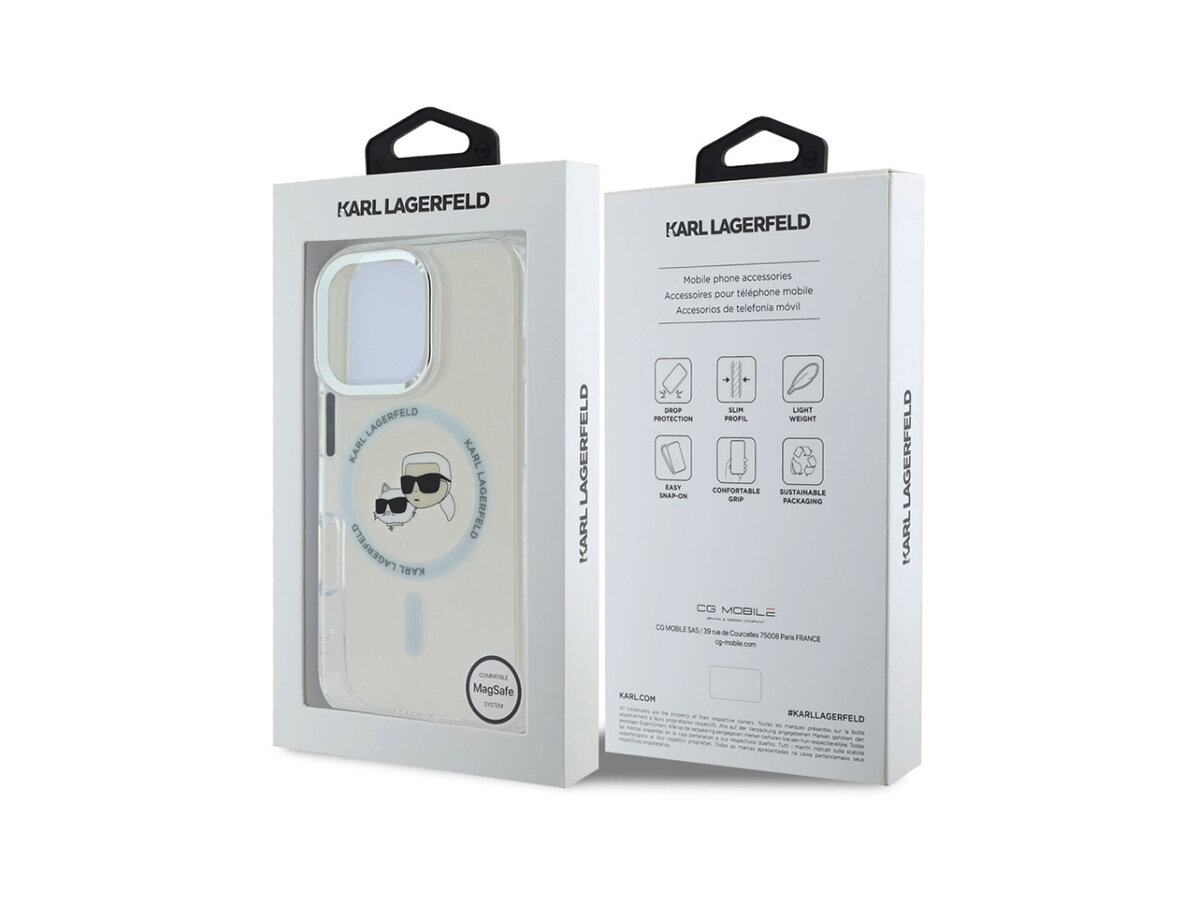 Kryt Karl Lagerfeld IML K&CH Heads Metal Frame MagSafe je ideální pro ty, kteří chtějí svému telefonu dodat jedinečný styl a zároveň využít moderní funkce jako je MagSafe připojení.
