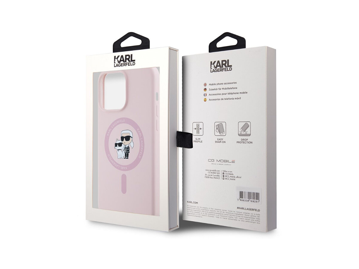 Měkká ochrana s ikonickým designem a podporou MagSafe Zadní kryt Karl Lagerfeld Liquid Silicone Karl and Choupette MagSafe pro iPhone spojuje příjemný silikonový materiál s designem legendárního Karla Lagerfelda a jeho kočky Choupette. Díky integrované podpoře MagSafe umožňuje pohodlné bezdrátové nabíjení a používání kompatibilního příslušenství.