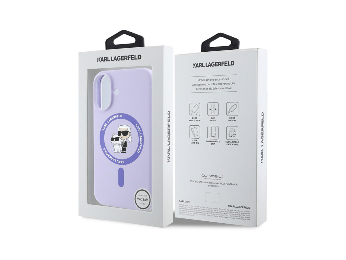 Karl Lagerfeld Liquid Silicone Karl and Choupette MagSafe Zadní Kryt pro iPhone 16 Fialová