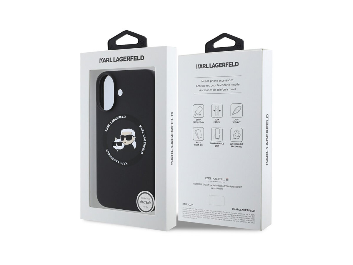 Karl Lagerfeld Liquid Silicone K&CH Heads MagSafe Zadní Kryt pro iPhone 16 Černá