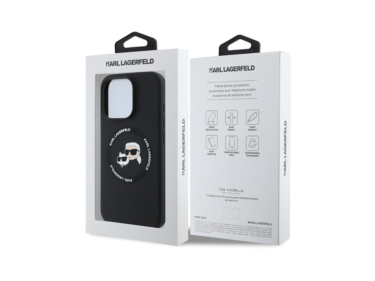 Karl Lagerfeld Liquid Silicone K&CH Heads MagSafe Zadní Kryt pro iPhone 16 Pro Černá