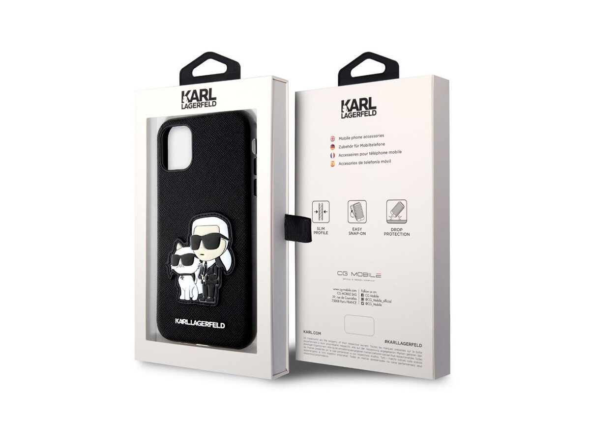 Karl Lagerfeld PU Saffiano Karl and Choupette Zadní Kryt pro iPhone 11 Černá
