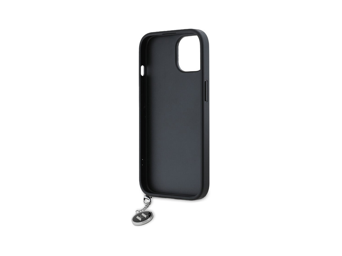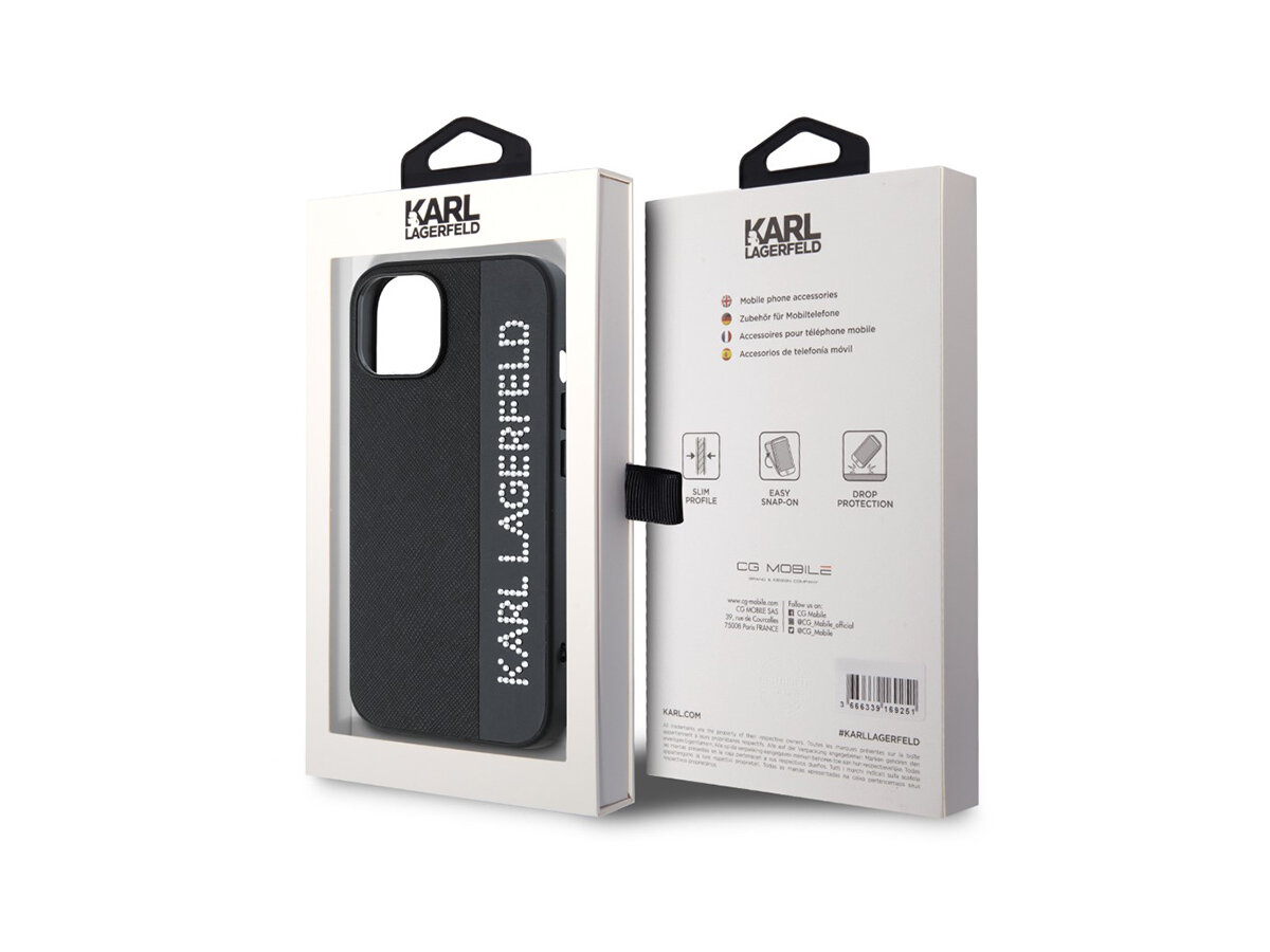 Karl Lagerfeld PU Saffiano Rhinestone Charm Zadní Kryt pro iPhone 15 Černá