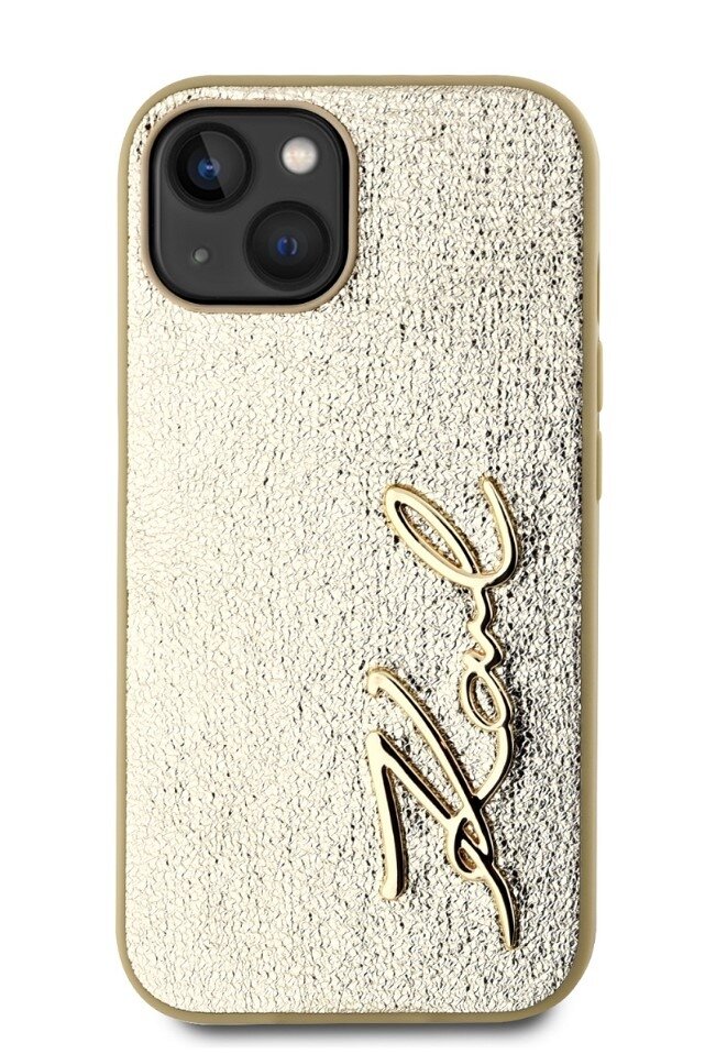 Karl Lagerfeld Wrinkled PU Signature Logo Zadní Kryt pro iPhone 15 Gold