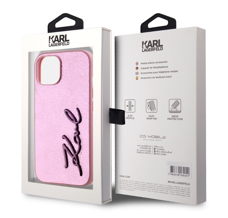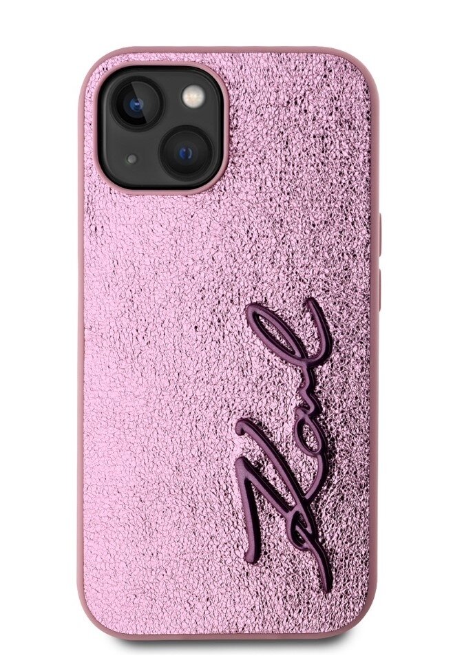 Karl Lagerfeld Wrinkled PU Signature Logo Zadní Kryt pro iPhone 15 Pink