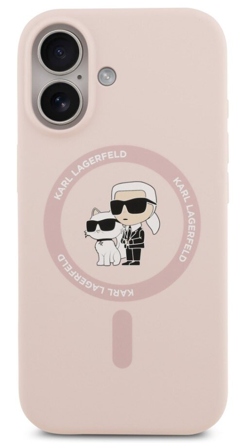Stylový kryt Karl Lagerfeld (KLHMP17SSCMKCRHP) z liquid silikonu s výstelkou z mikrovlákna chrání telefon před poškozením a skvěle padne do ruky. Ikonické vyobrazení Karla a Choupette doplňuje elegantní design, zatímco MagSafe podpora zajišťuje pohodlné b