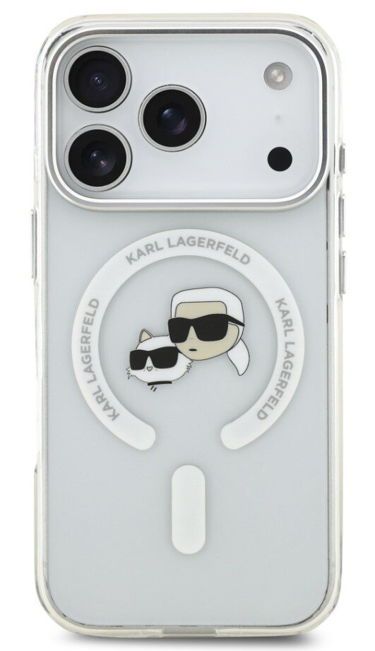 Karl Lagerfeld zadní kryt pro iPhone 17 Pro, IML K&Ch Heads Metal Frame MagSafe - průhledná
