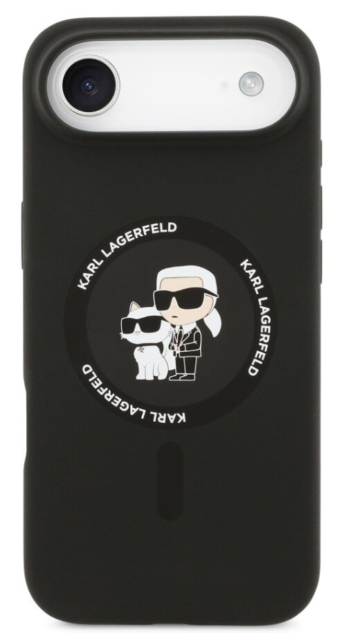 Stylový kryt Karl Lagerfeld (KLHMP17MSCMKCRHK) z liquid silikonu s výstelkou z mikrovlákna chrání telefon před poškozením a skvěle padne do ruky. Ikonické vyobrazení Karla a Choupette doplňuje elegantní design, zatímco MagSafe podpora zajišťuje pohodlné b