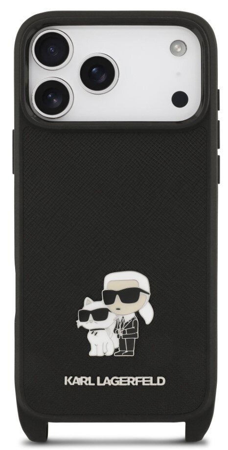 Karl Lagerfeld zadní kryt s popruhem pro iPhone 17 Pro Max, Saffiano Metal K&C - černá