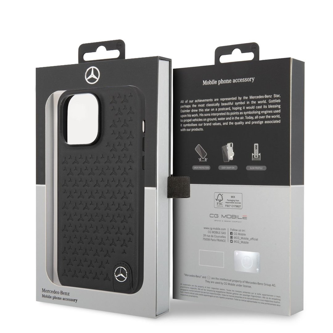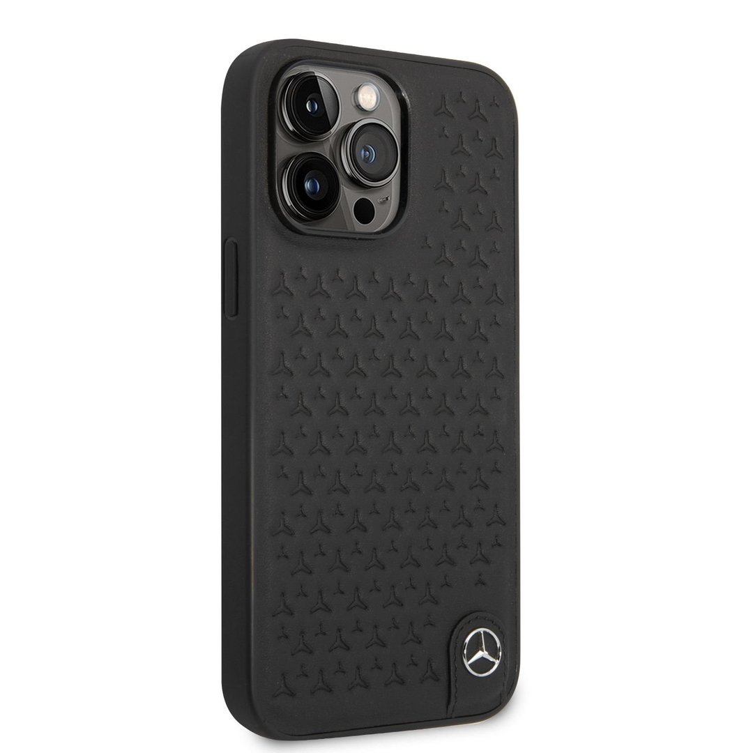 Mercedes Genuine Leather Star Zadní Kryt pro iPhone 14 Pro Max Black