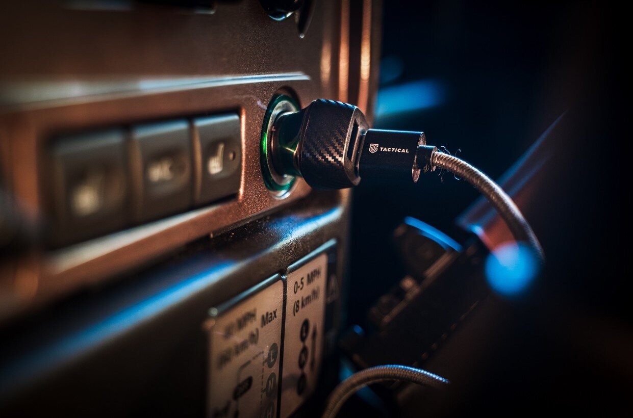 Hodně cool nabíječka do auta se dvěma USB-A porty, Tacticalským designem