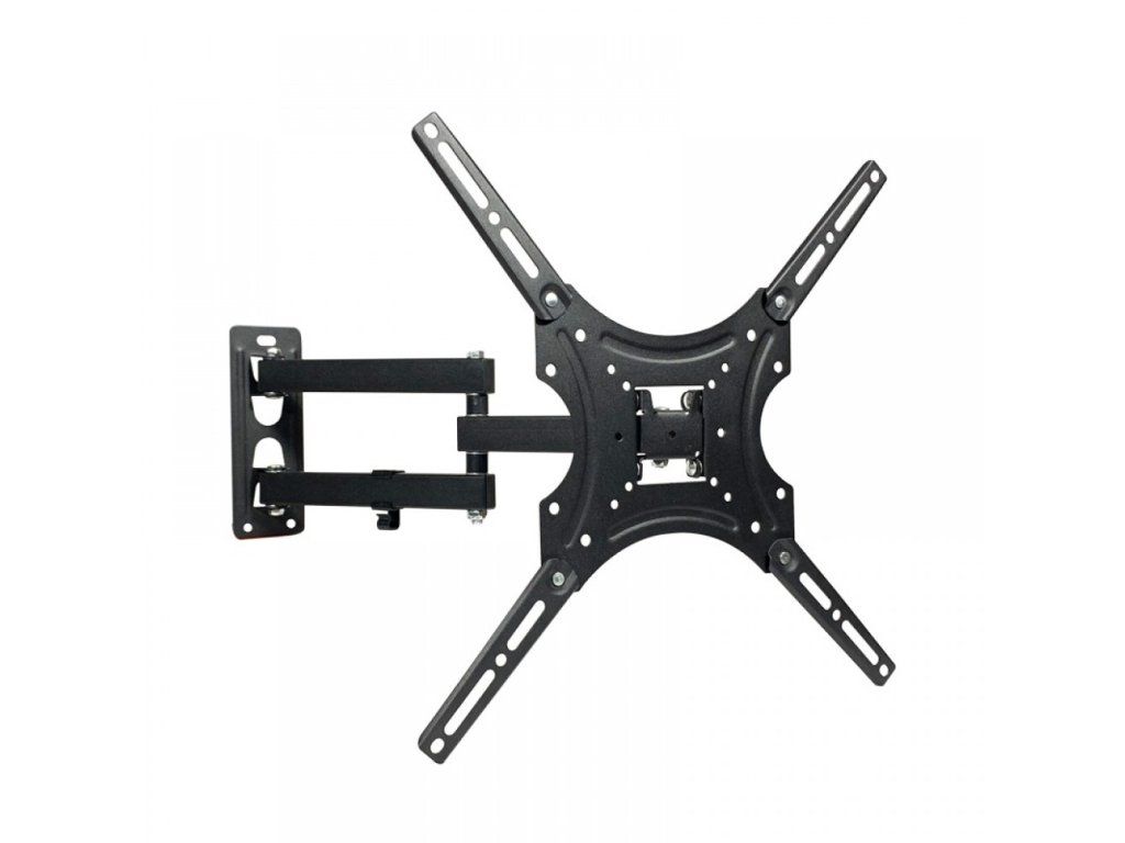 Ideální řešení pro flexibilní uchycení menších televizí. Tento nástěnný držák umožňuje pohodlné naklápění a otáčení obrazovky tak, abyste si mohli nastavit dokonalý úhel sledování. Je vhodný pro televize o velikosti 32″ až 55″ a podporuje VESA standard až 200 × 200 mm. Robustní konstrukce v černém provedení zaručuje dlouhou životnost a bezpečné uchycení.