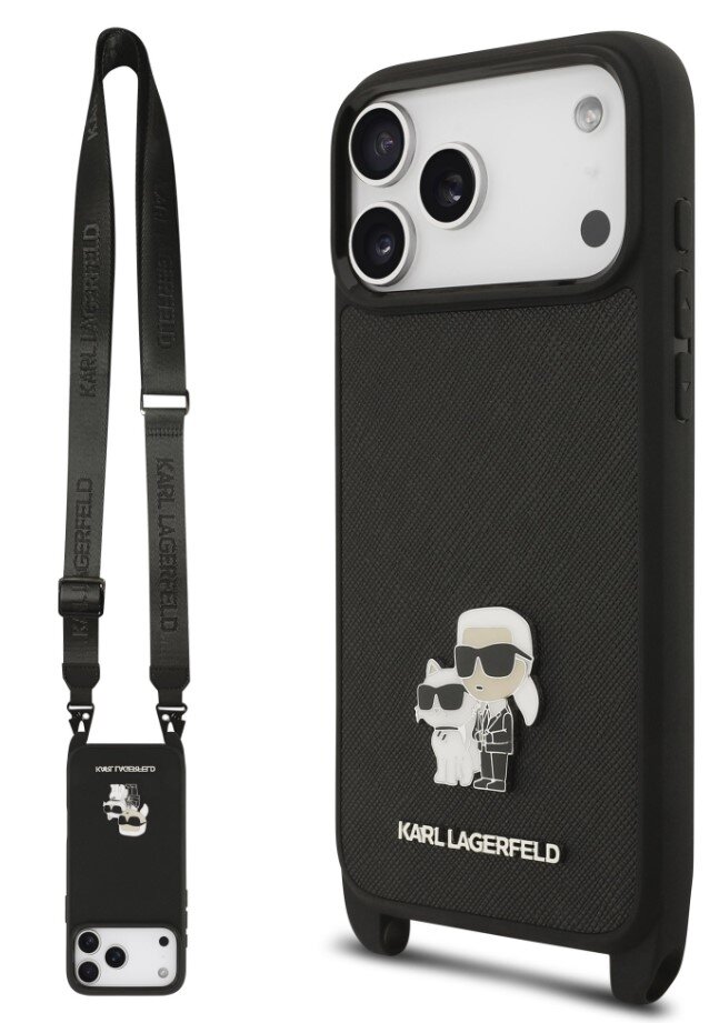 Karl Lagerfeld zadní kryt s popruhem pro iPhone 17 Pro Max, Saffiano Metal K&C - černá