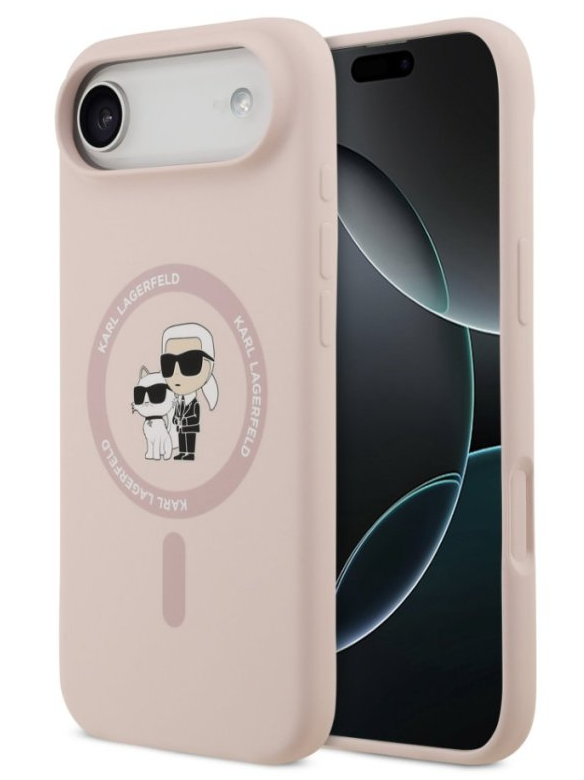 Stylový kryt Karl Lagerfeld (KLHMP17MSCMKCRHP) z liquid silikonu s výstelkou z mikrovlákna chrání telefon před poškozením a skvěle padne do ruky. Ikonické vyobrazení Karla a Choupette doplňuje elegantní design, zatímco MagSafe podpora zajišťuje pohodlné b