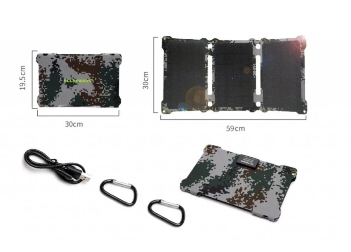 Solární Přenosná Nabíječka (rozkládací panel) Allpowers Adventure, 21W - maskáčová