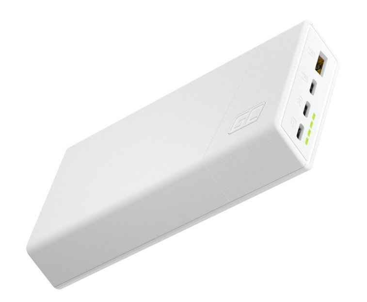 Kompaktní síla na cesty – powerbanka Green Cell PowerPlay 20S v bílé barvě přináší vysokou kapacitu a pokročilé technologie pro rychlé nabíjení. Nabízí až 22,5 W výkonu a tři výstupy pro současné nabíjení více zařízení.