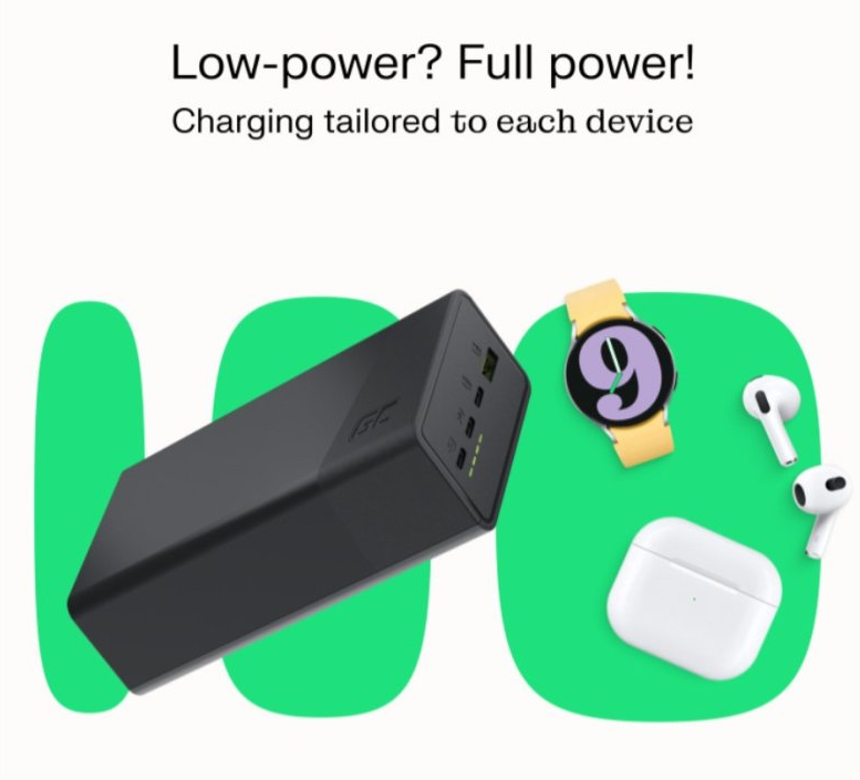 Silná powerbanka s kapacitou 30 000 mAh, čtyřmi výstupy a technologií rychlého nabíjení Quick Charge 3.0 a GC Ultra Charge. Umožňuje nabíjení až tří zařízení zároveň a díky režimu low-power je ideální i pro menší elektroniku jako sluchátka nebo chytré hod