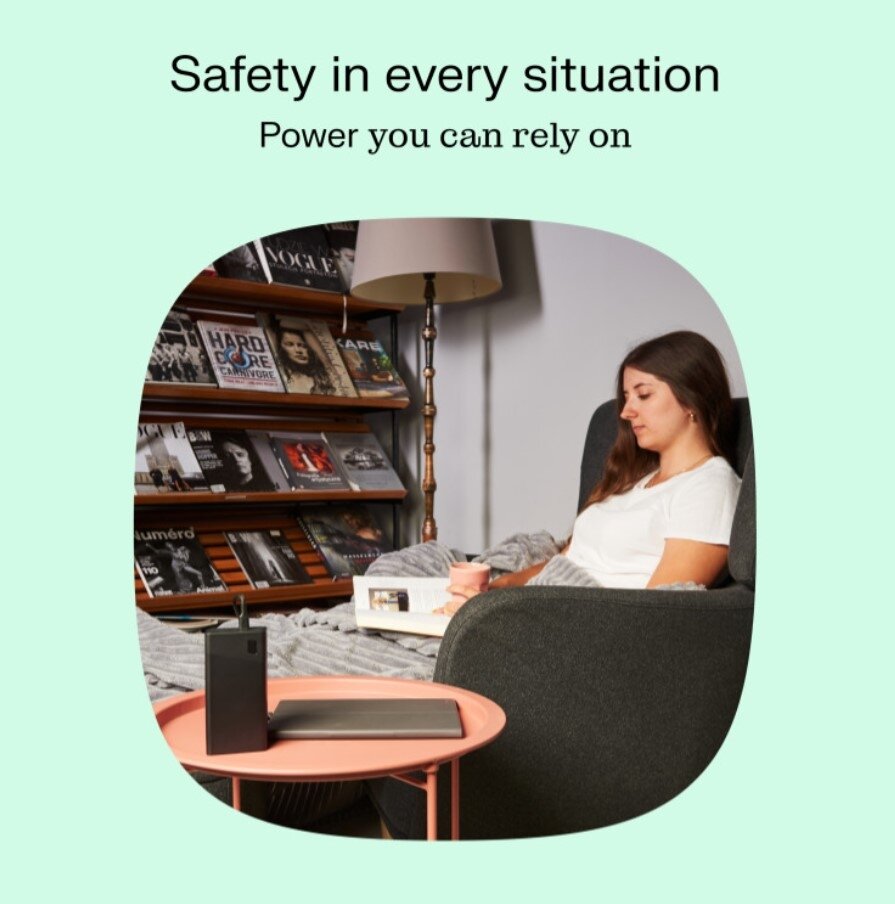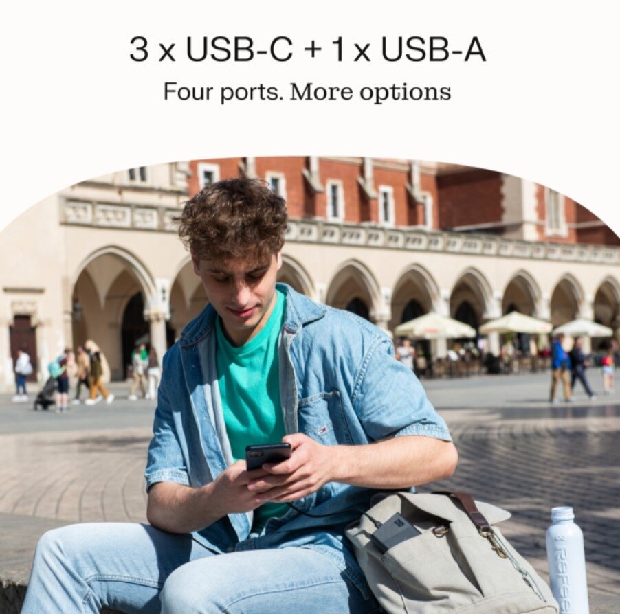 Se čtyřmi porty můžete napájet více zařízení najednou. Dva USB-C vstupy navíc umožňují flexibilní nabíjení samotné powerbanky. Vysoký výkon zaručuje efektivní nabití bez zbytečného čekání.