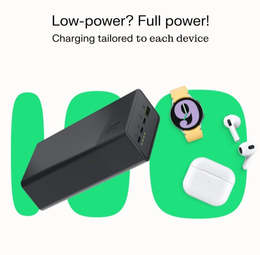 Tato powerbanka zvládne nabít telefon i několikrát a podporuje nejmodernější rychlonabíjecí technologie. Díky low-power režimu bezpečně dobije i drobná zařízení, která běžné powerbanky často nerozpoznají.