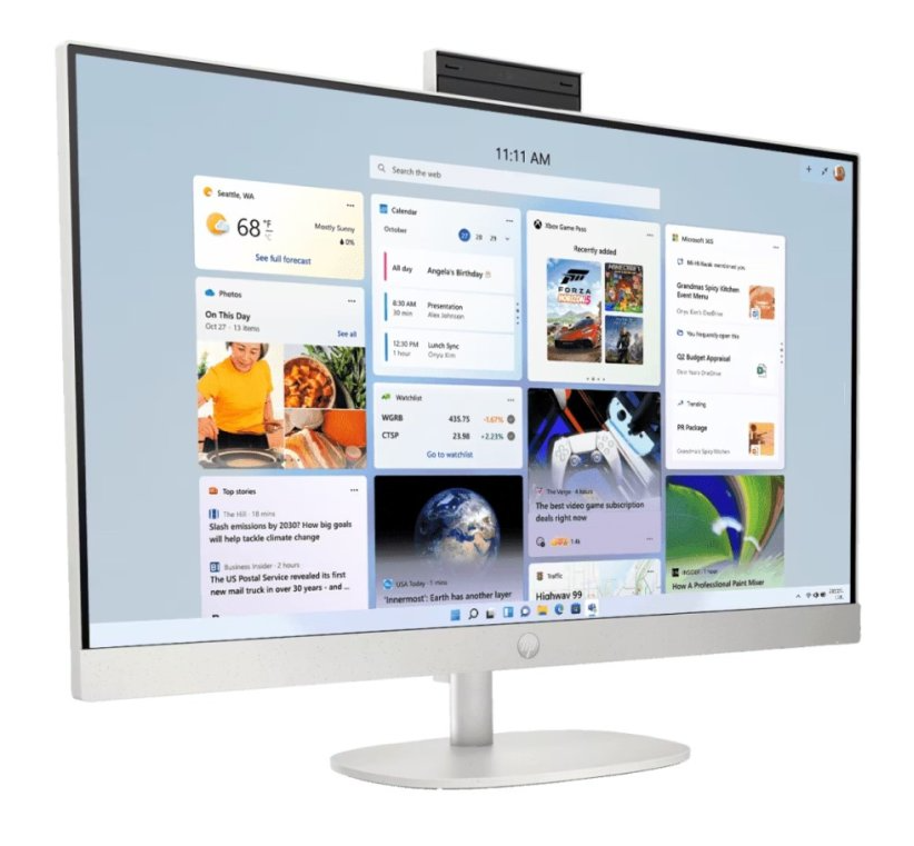 HP All‑in‑One 27‑cr1 – ideální volba pro ty, kdo hledají elegantní počítač s velkým displejem, který nezaplní prostor ani nevyžaduje složitou instalaci.