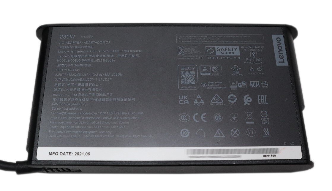 Originální adaptér Lenovo 230W 11,5A 20V hranatý konektor PN: ADL230SLC3A