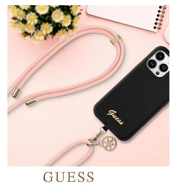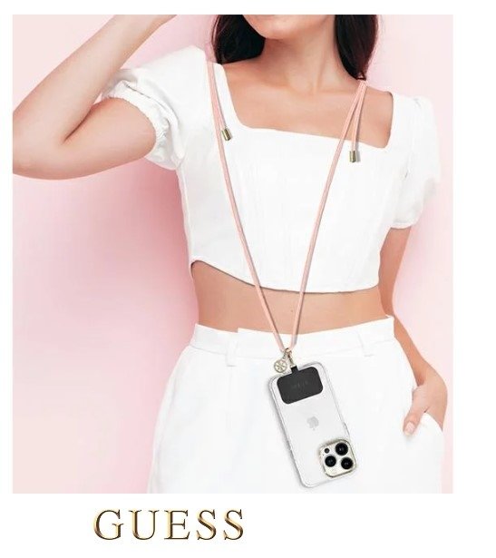 Pásek Guess CBDY Cord se velmi snadno instaluje – stačí mezi ochranné pouzdro a smartphone vložit speciální vložku s háčkem. Konec adaptéru s karabinou prochází otvorem nabíjecího portu a neruší jeho funkčnost a je plně kompatibilní s bezdrátovým nabíjením. Karabina připevněná k adaptéru umožňuje rychlé odpojení popruhu od telefonu.