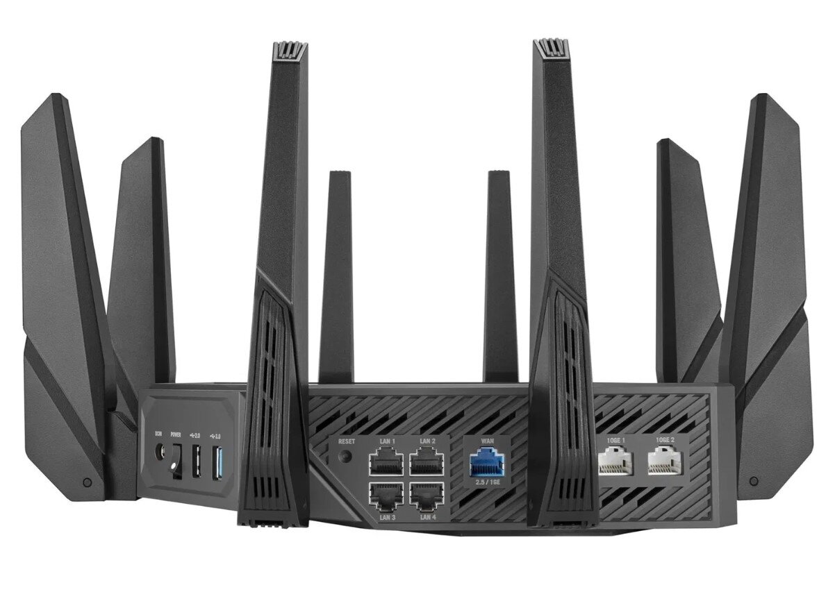 Router se může pochlubit WAN portem 2,5 Gb/s a dvěma 10 Gb/s LAN porty s podporou agregace linek. Díky AiProtection Pro s WPA3 budete mít jistotu, že vaše síť je chráněna před kybernetickými hrozbami a vaše data zůstávají v bezpečí.