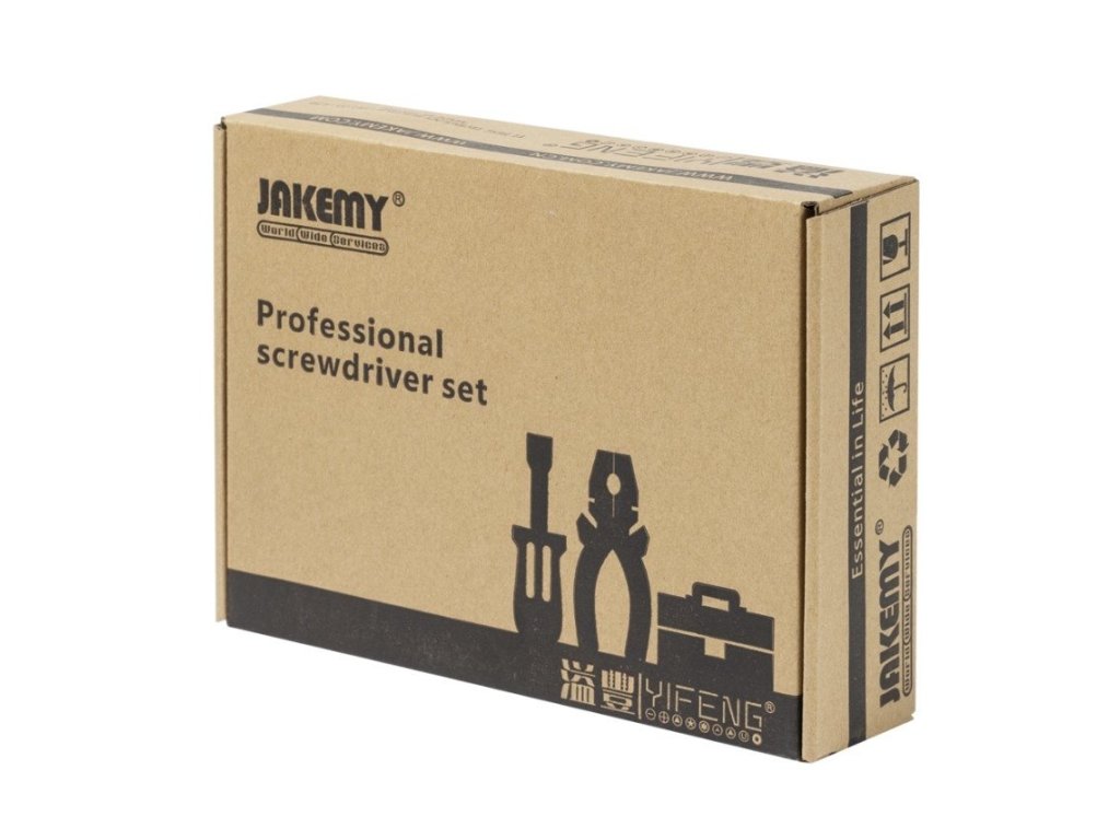 Jakemy JM-6123 je profesionální sada nářadí pro údržbu a opravy domácích spotřebičů, nábytku, automobilů a dalších zařízení. Obsahuje 31 kusů nástrojů, včetně různých typů bitů, zásuvek, prodlužovací tyče, magnetizéru a otočné ratchetové rukojeti. Bitům jsou přiřazeny různé barvy pro lepší rozlišení. Sada je dodávána v odolné plastové krabici s poutkem na uchycení. Sada je vhodná pro domácí i profesionální použití.
