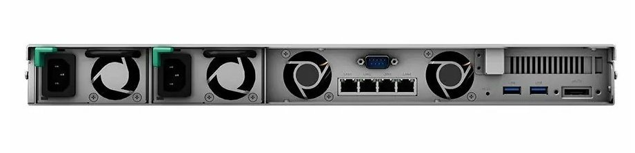 Zařízení je vybaveno čtyřmi síťovými porty, které podporují jak spojení do jednoho kanálu pro zvýšení propustnosti, tak automatické přepnutí v případě výpadku. Nechybí ani porty USB 3.0 a eSATA pro další rozšiřitelnost.