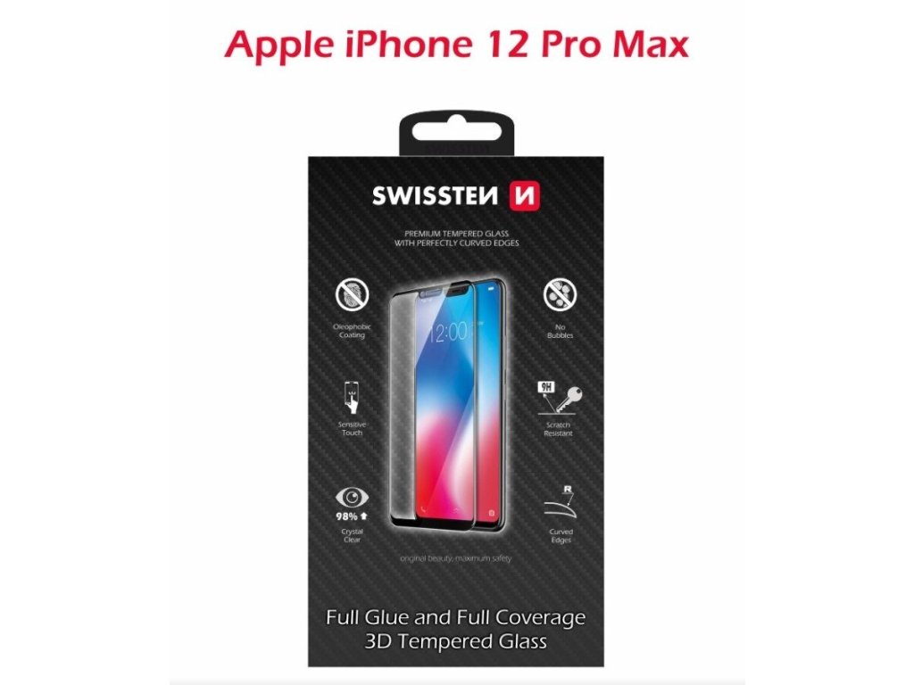 SKLO SWISSTEN ULTRA DURABLE 3D FULL GLUE GLASS APPLE IPHONE 12 Pro Max ČERNÉ