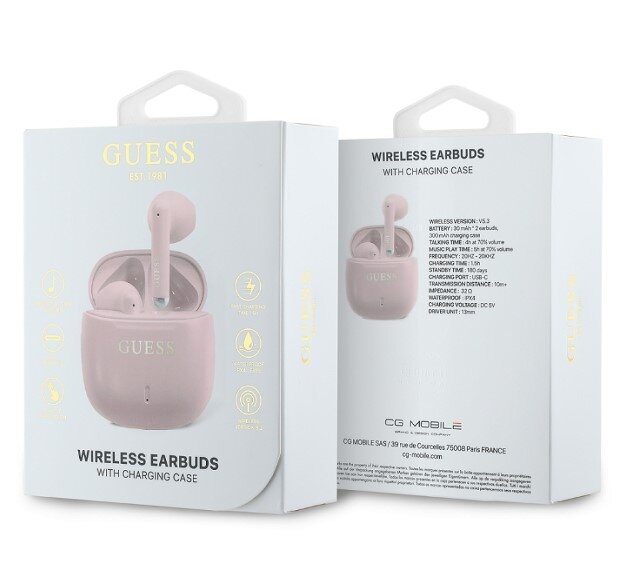 GuessPrintedClassicLogoTWSBezdrátováSluchátkaPink