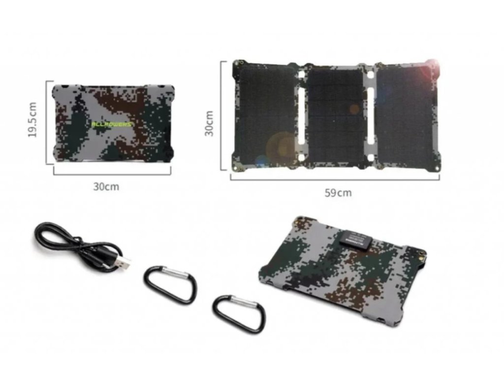 Solární Přenosná Nabíječka (rozkládací panel) Allpowers Adventure, 21W - maskáčová