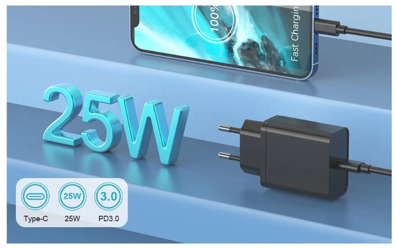 Rychlonabíječka 25W s USB-C konektorem je ideálním společníkem pro rychlé a efektivní nabíjení vašich elektronických zařízení.