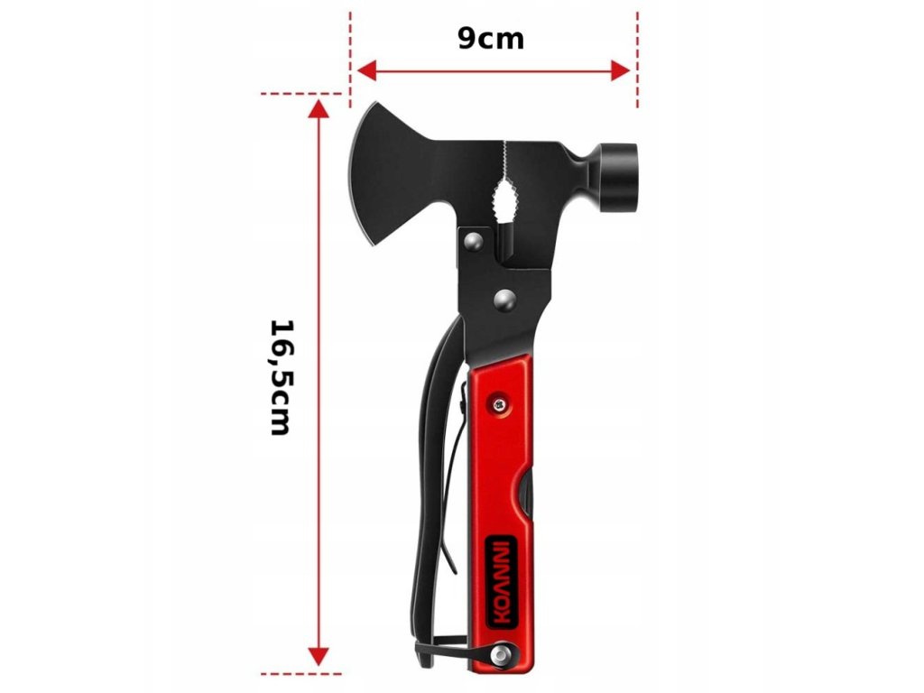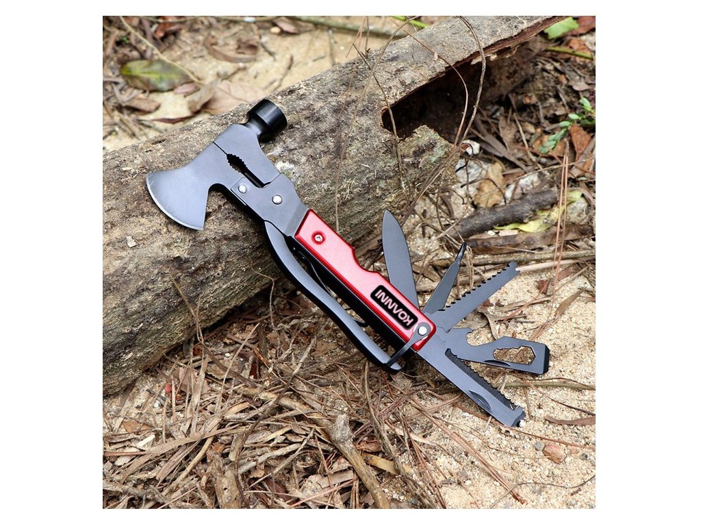 Tradiční kombinované kleště ve tvaru a funkci kladiva a sekery s několika dalšími praktickými funkcemi:
